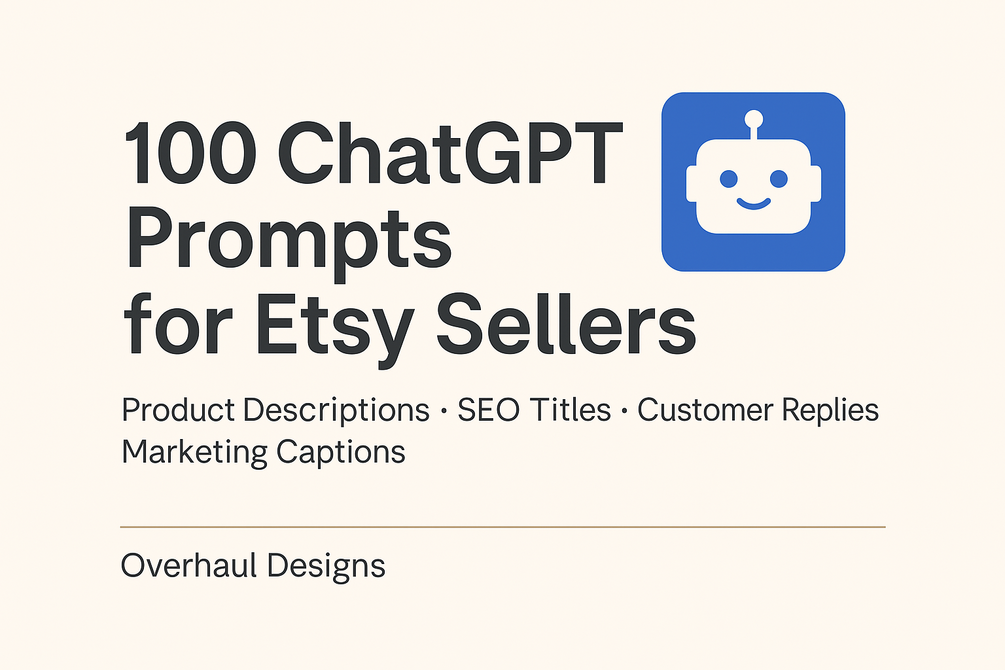 This 100-prompt pack will help you save time, improve your listings, and grow your shop — with the power of ChatGPT.